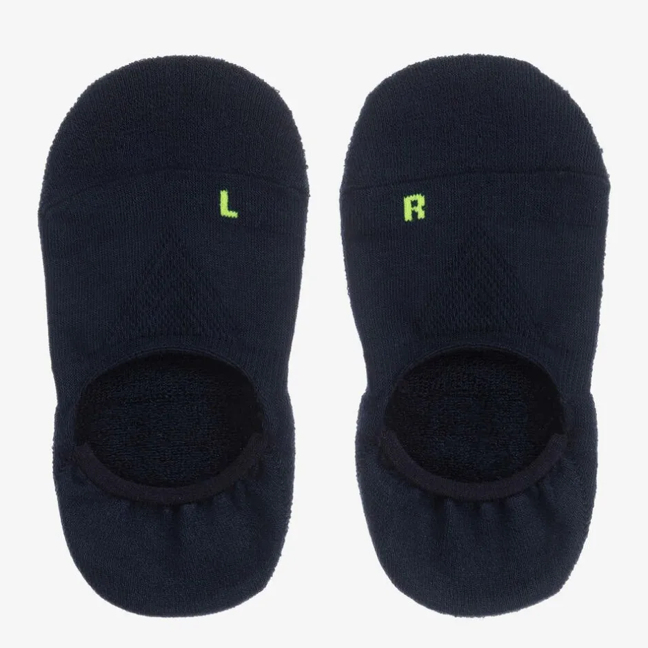 Navy blue trainer socks for boys and girls by Falke. Made in a soft polyester blend, they have an anti-slip pad inside the heel for a secure, comfortable fit. Designed for moisture control and comfort, with a lightweight cushioned sole.