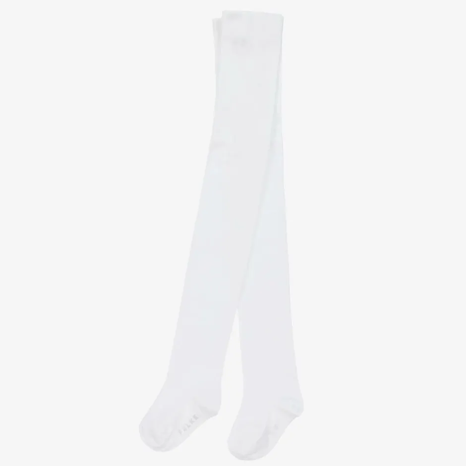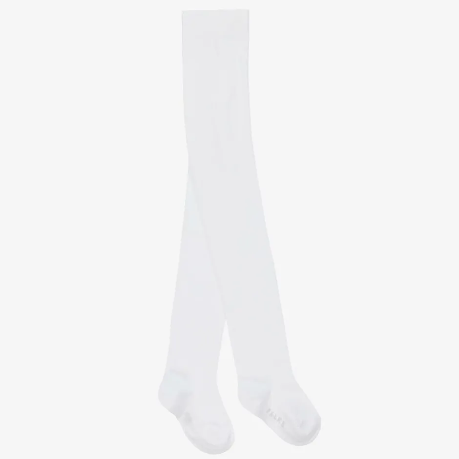 White tights for boys and girls by Falke, knitted in a soft and stretchy cotton blend. An everyday essential, these tights have an elasticated waistband for a secure and comfortable fit.