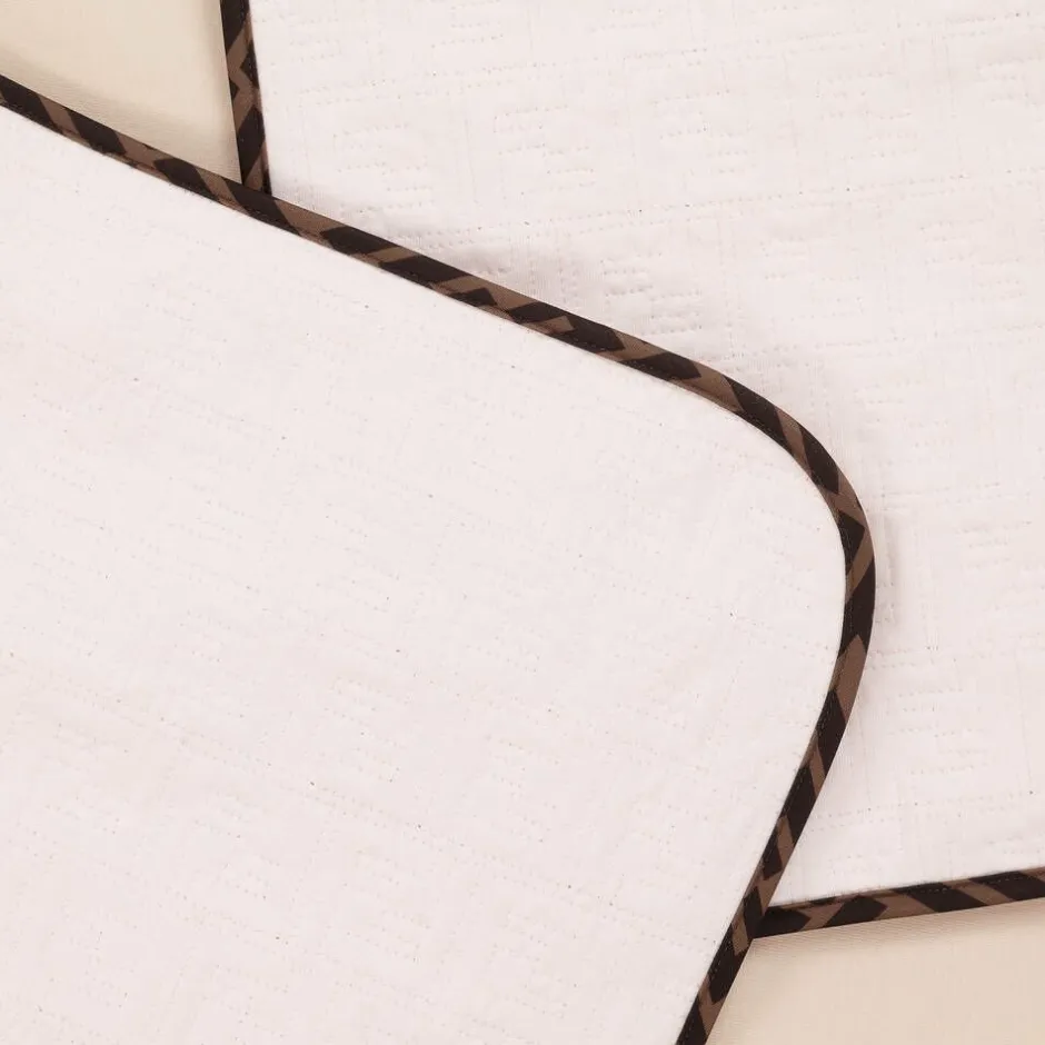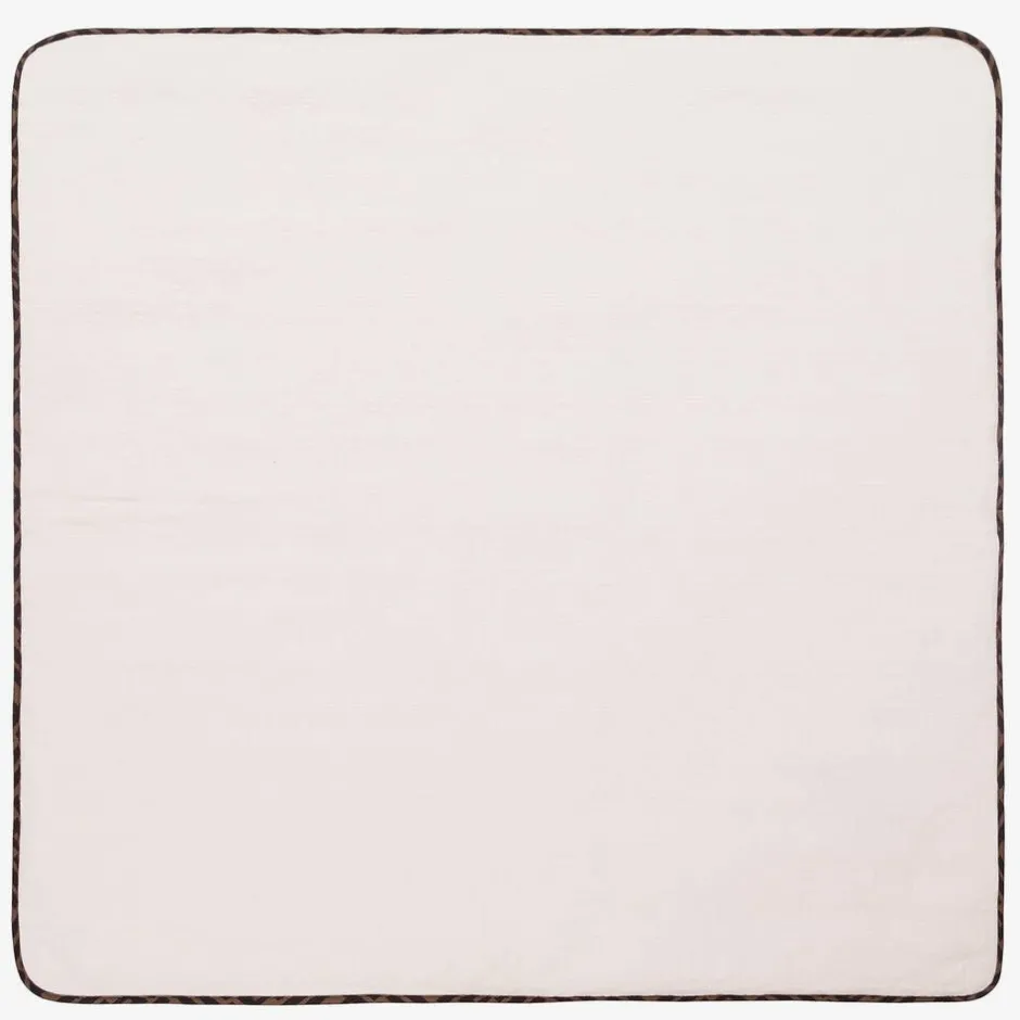 Light pink padded blanket for baby girls by luxury designer, Fendi. Made in soft cotton, one side is pink, quilted with the iconic FF logo, and the other side is made with soft beige jersey. Lightly padded for gentle comfort, it is trimmed with the designer's brown FF logo tape for a distinctive, designer look.