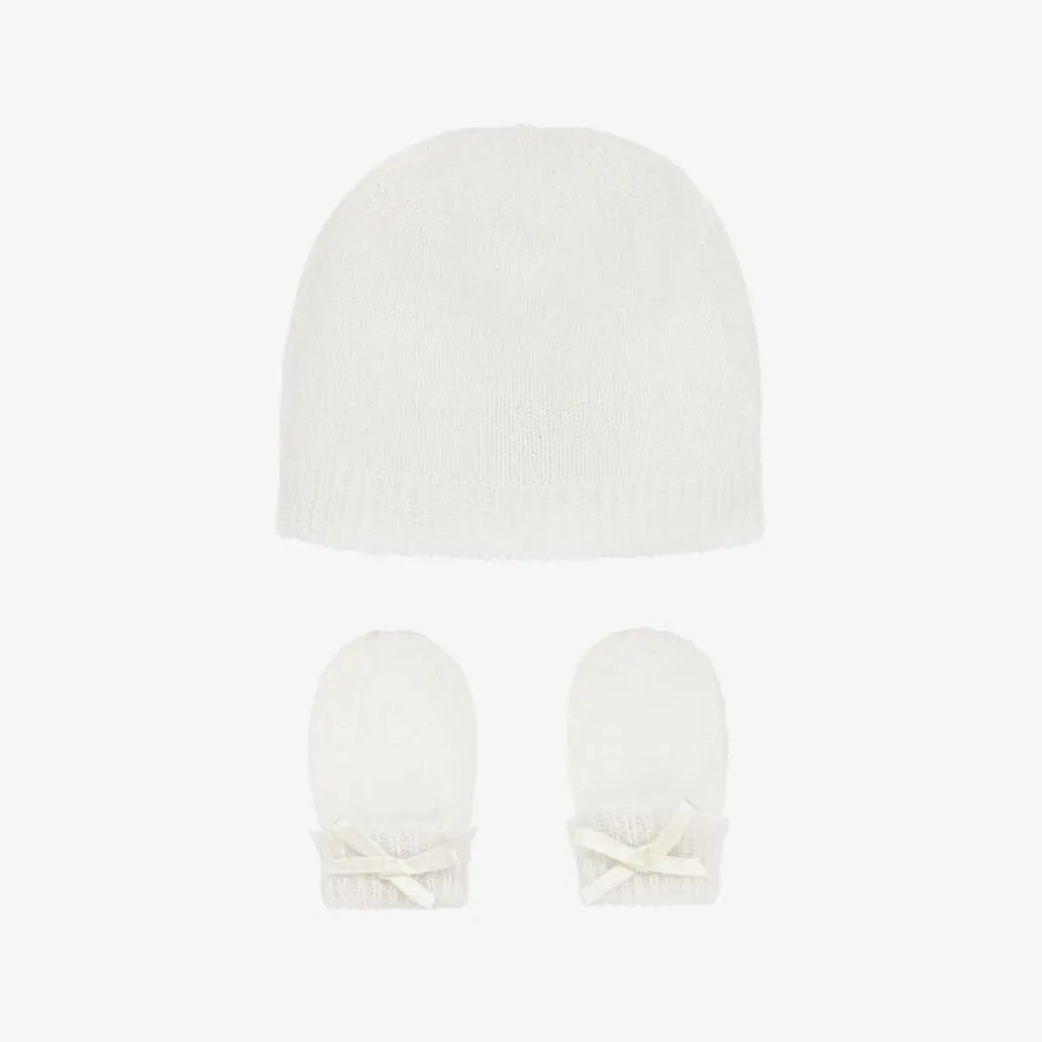 G.H.Hurt amp; Son White Cashmere Baby Hat & Mittens Set