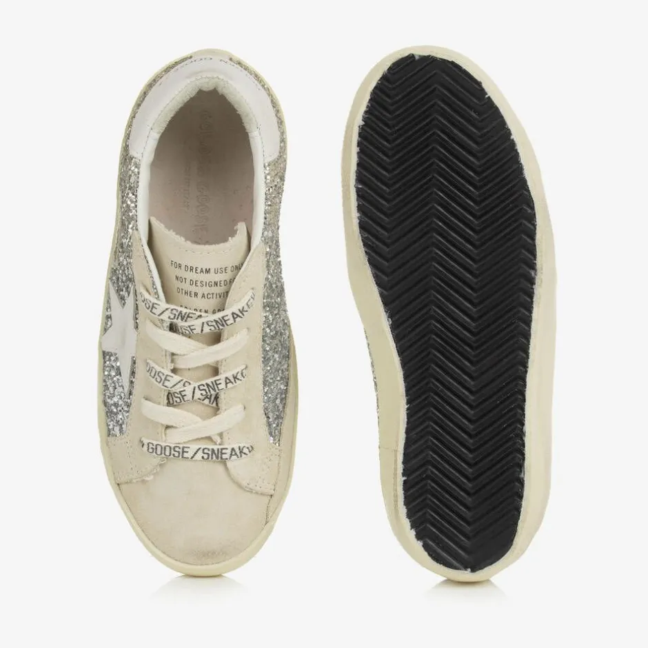 Golden Goose Girls Silver & Gold Glitter Super-Star Trainers Discount