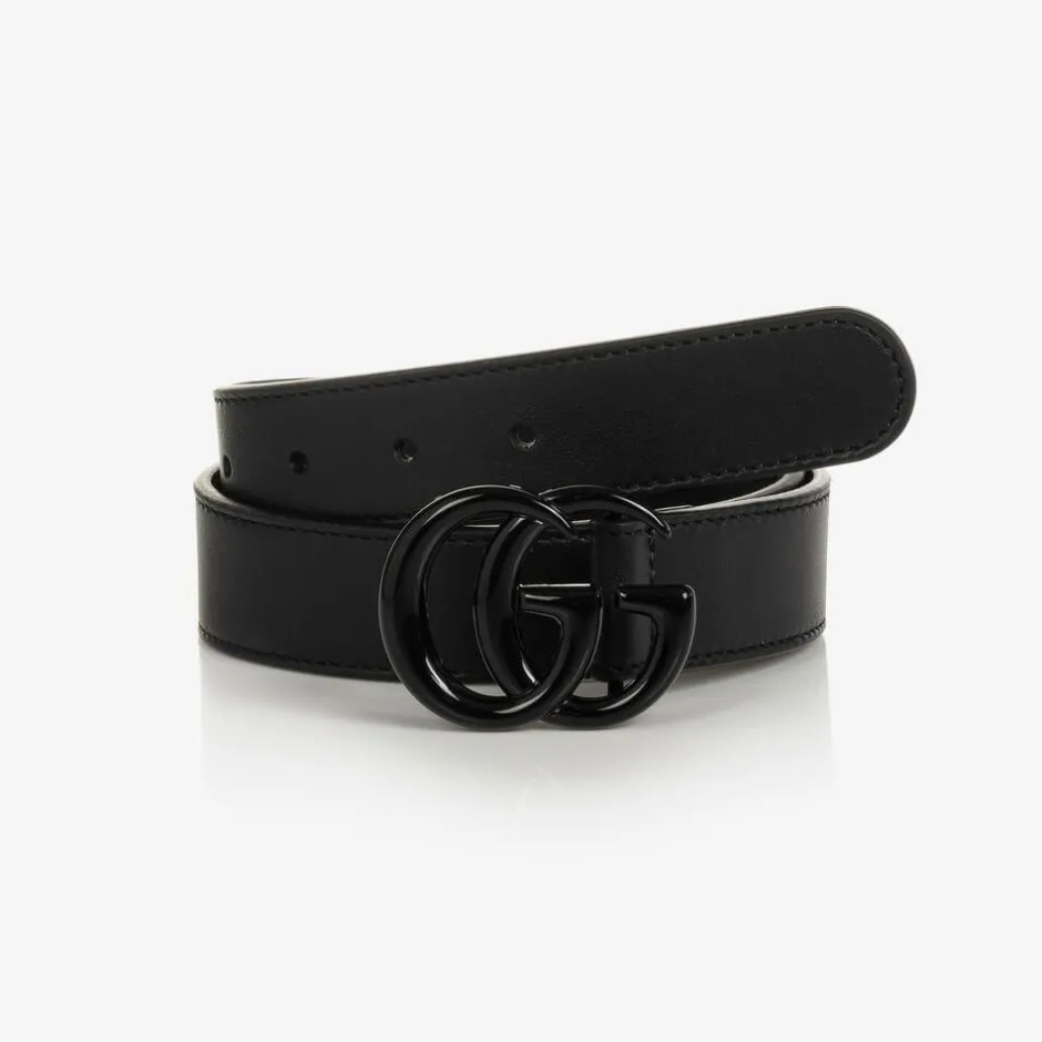 A classic black leather belt for boys and girls from luxury brand Gucci. This Italian-made accessory is signed with the label's tonal black Double G logo as a metal pin buckle, adding that signature detail the designer is renowned for. Included is a branded storage bag to store the item when not in use.