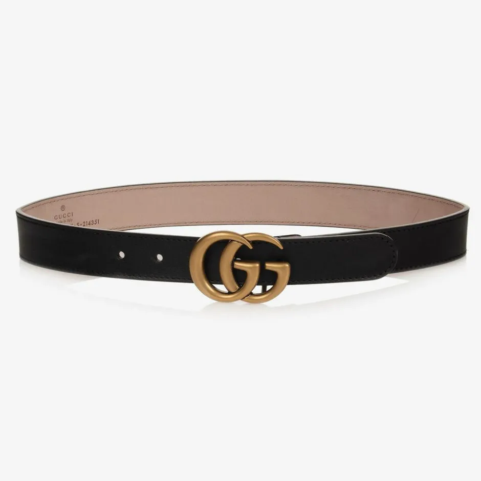A mini version of the adult style, a black leather belt for boys and girls from luxury Italian brand Gucci. A perfect accessory to complete an outfit, it has the brand's iconic Double G buckle in gold tone, inspired by an archival design from the '70s.