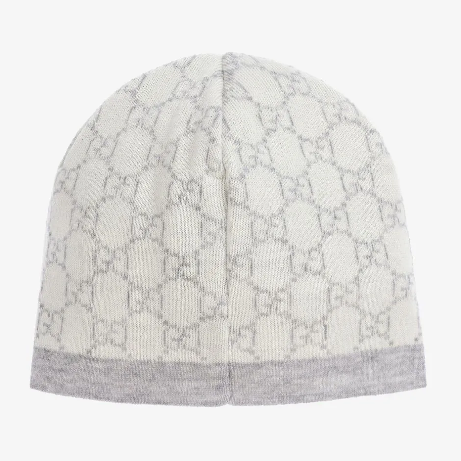 Gucci Ivory & Grey Wool GG Baby Hat Best