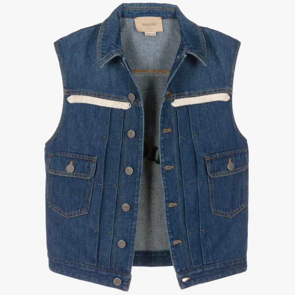 Gucci Teen Blue Embroidered Denim Gilet Best