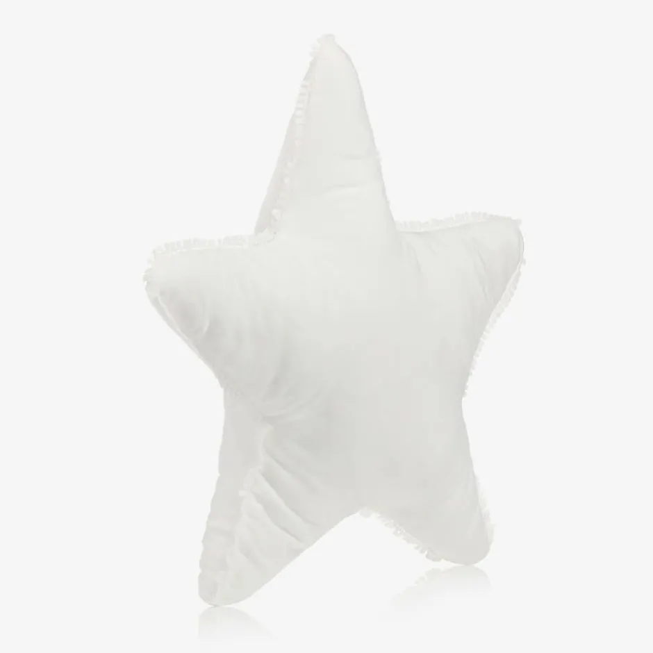 A lovely white star-shaped velvet pillow by Jamiks, with a delicate lace trim. Soft and padded, it makes a sweet, decorative accessory for the nursery and adds cosiness.