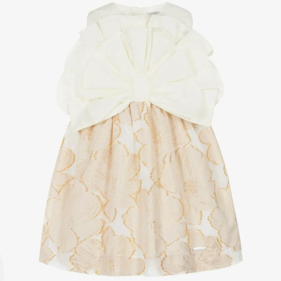 Jessie and James London Girls Ivory & Gold Floral Jacquard Dress Online