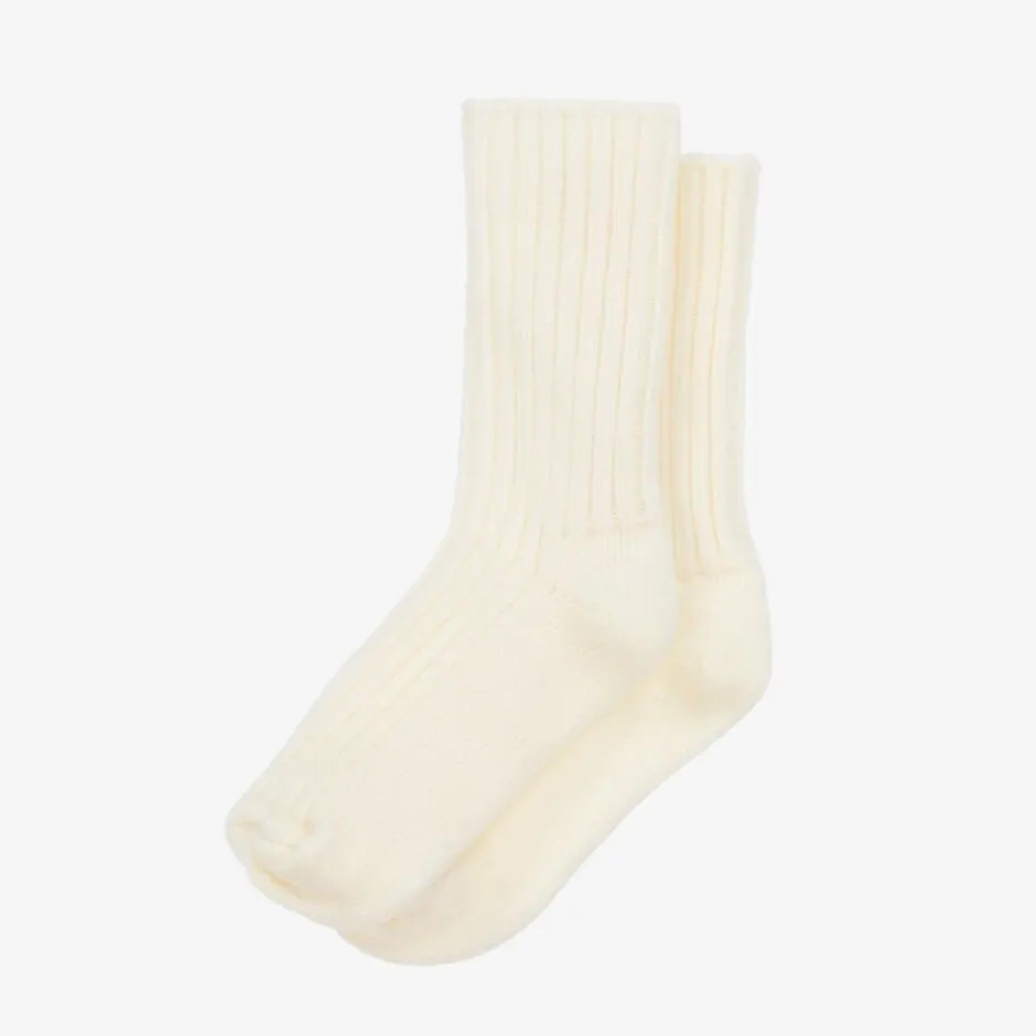 Ivory thermal socks for boys and girls by Joha, knitted in the softest wool blend. Cosy and warm on the feet, they have a ribbed design in a comfortable calf length.