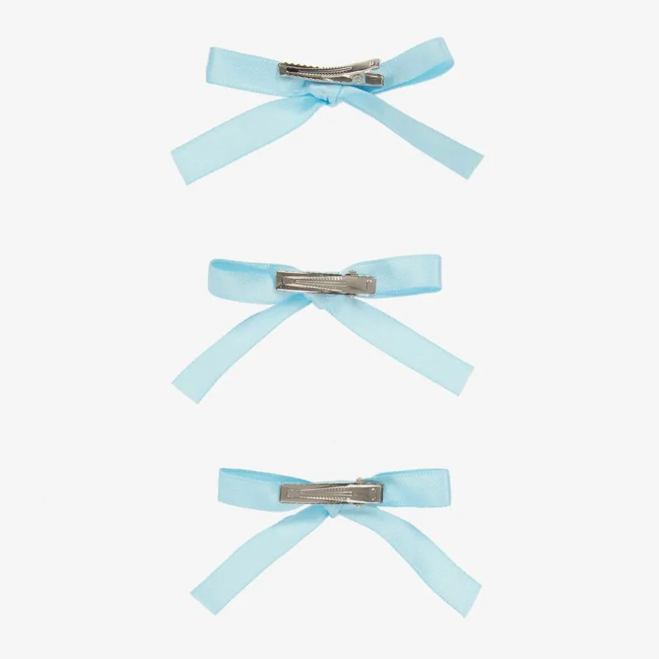 Junona Girls Blue Satin Bow Hair Clips (3 Pack) Clearance
