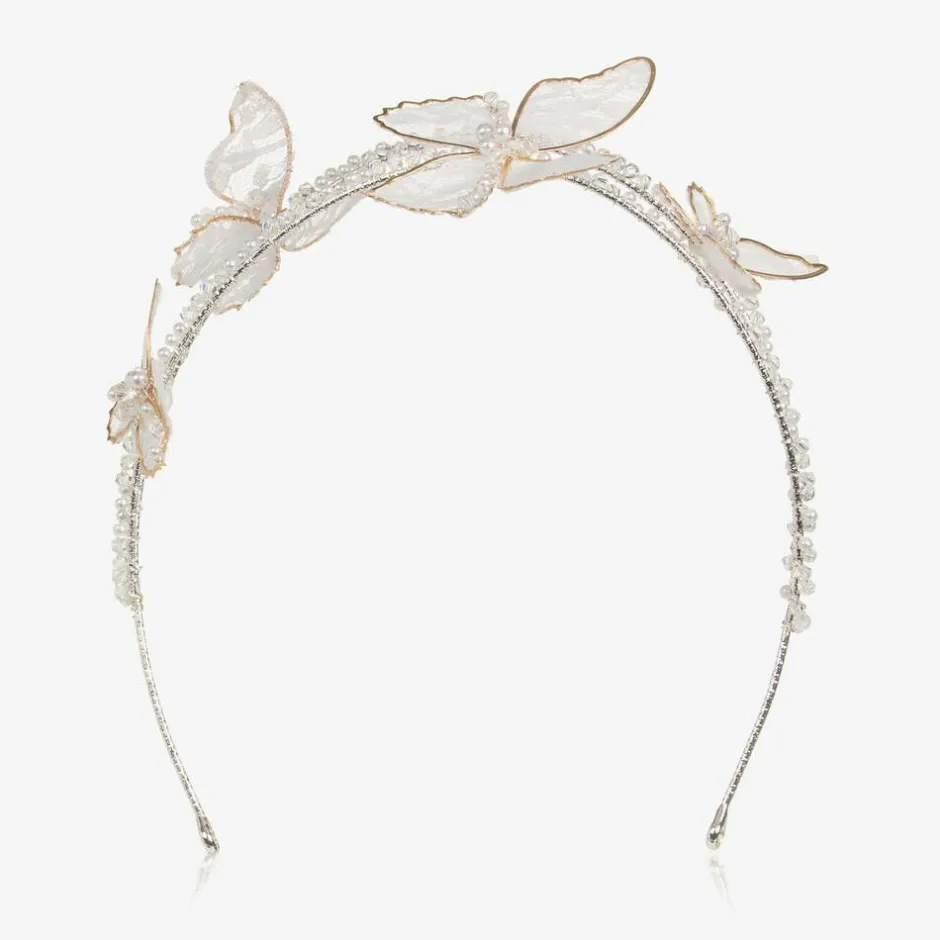 Junona Girls Ivory Bead & Lace Butterfly Hairband Outlet