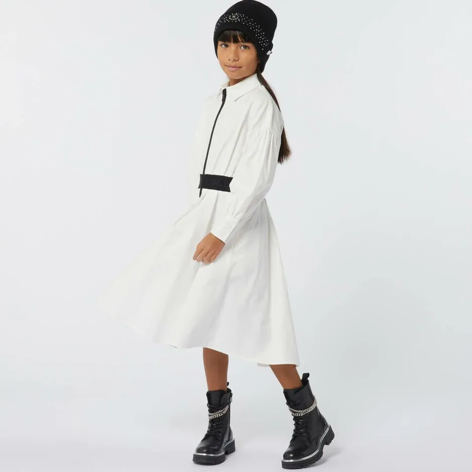 KARL LAGERFELD KIDS Girls White Cotton Shirt Dress Sale