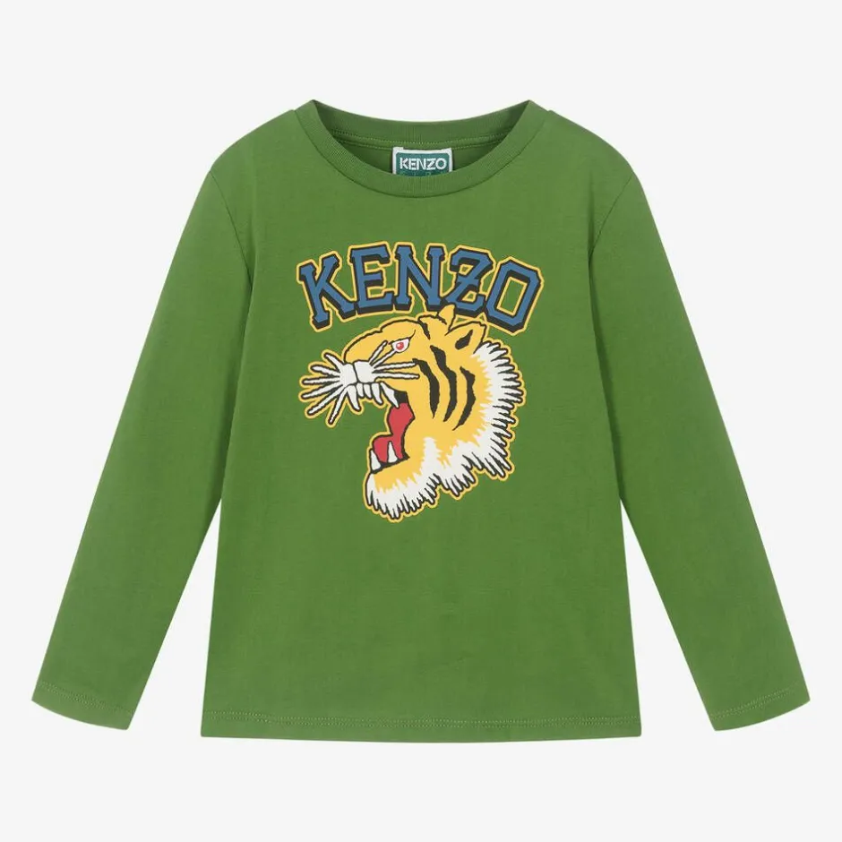 KENZO KIDS Boys Green Cotton Varsity Tiger Top Best