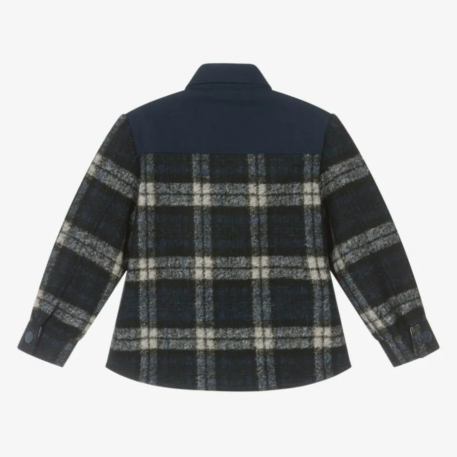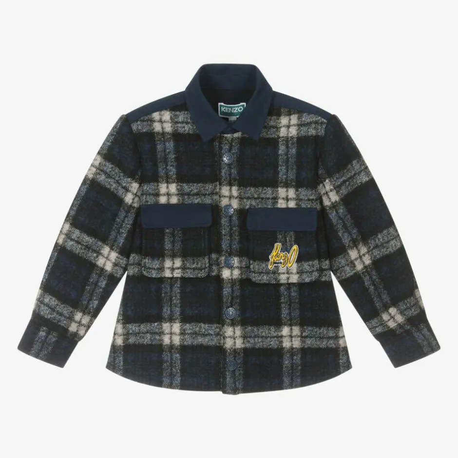 KENZO KIDS Boys Navy Blue Check Shacket Online