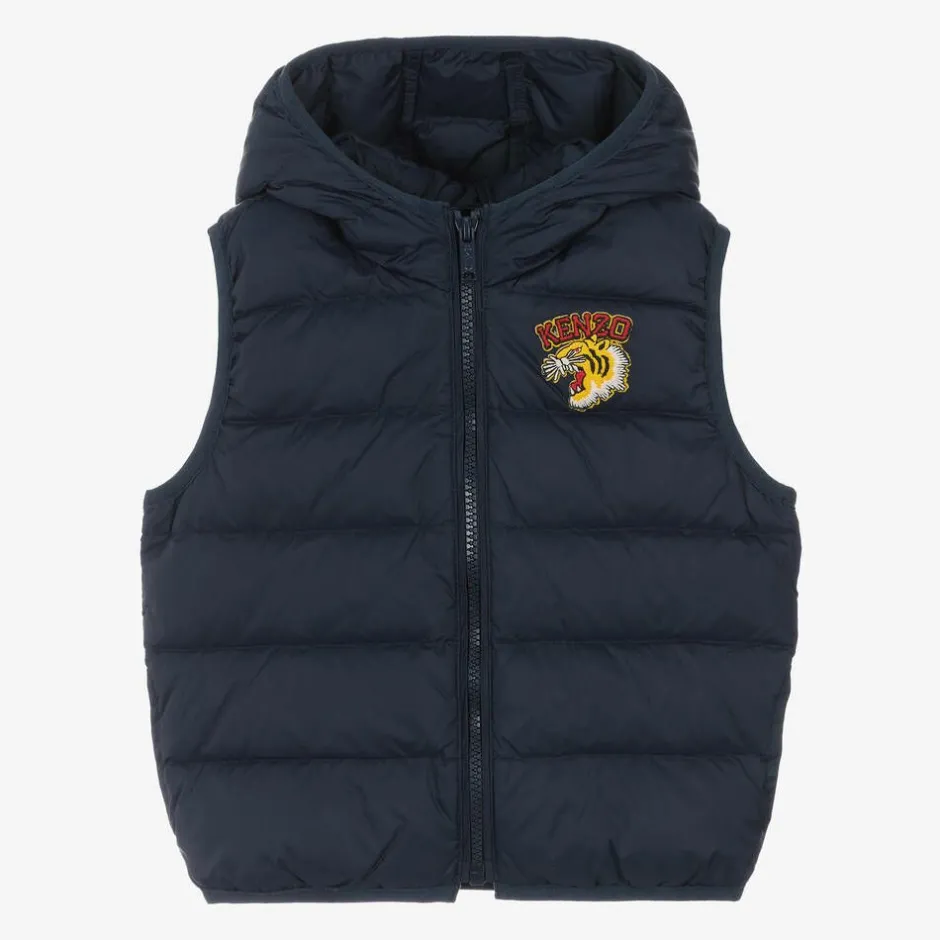 KENZO KIDS Navy Blue Varsity Tiger Down Gilet Discount