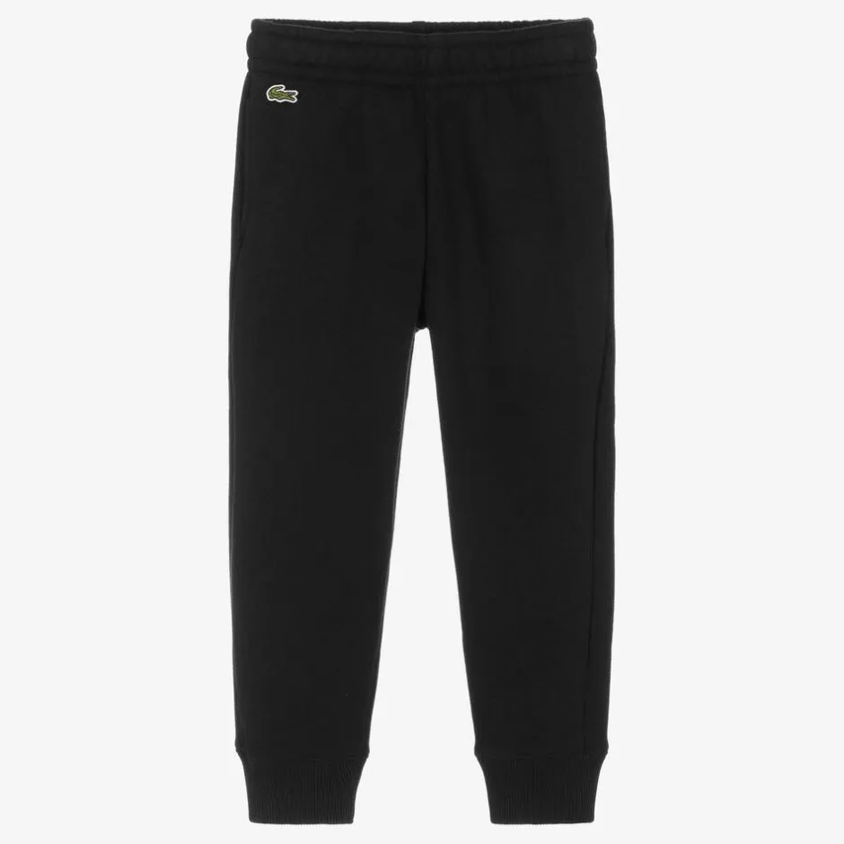 Black jersey joggers for boys and girls by Lacoste. The brand's instantly recognisable crocodile logo is appliquéd on the front for branded appeal and stretchy waistband promises a comfortable fit.