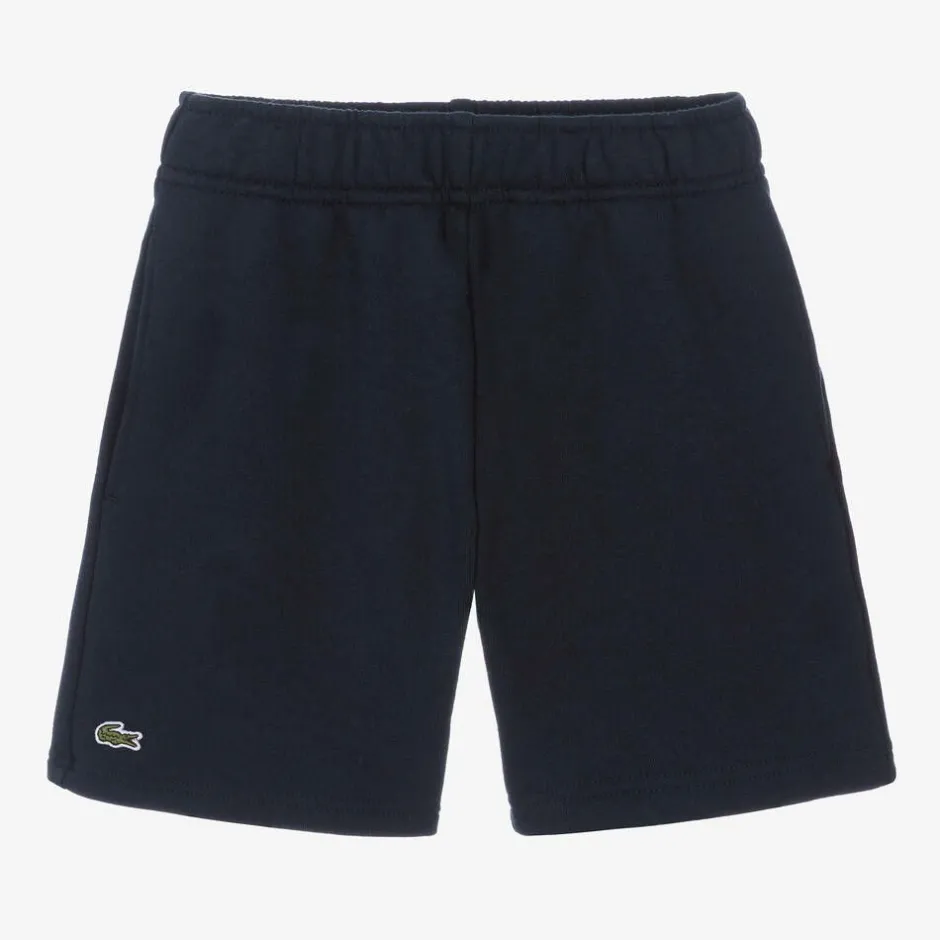 Sporty and casual, these navy blue shorts for boys are by Lacoste. Made in comfortable organic cotton jersey with recycled fibres, they have an internal drawstring for a good fit and useful concealed side pockets. The brand's iconic crocodile logo badge is on one leg for a signature look.