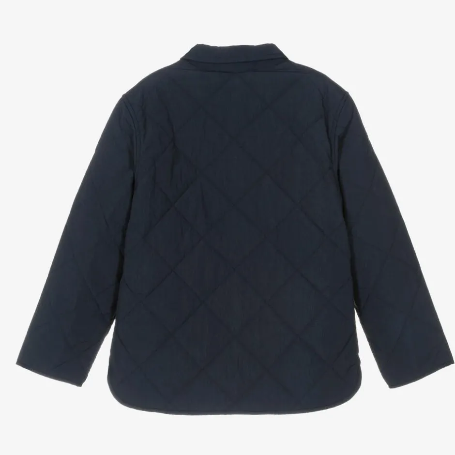 A timeless navy blue quilted coat for boys from Lacoste. Lined in satin and lightly padded for added warmth, this lovely coat is finished with the brand's iconic crocodile logo on the chest.