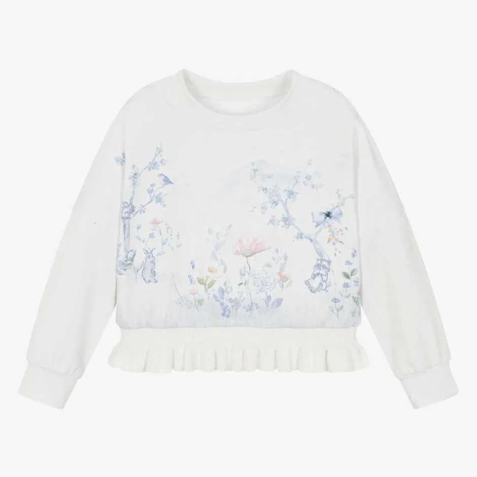 Lapin House Girls Ivory Woodland Print Cotton Sweatshirt Sale