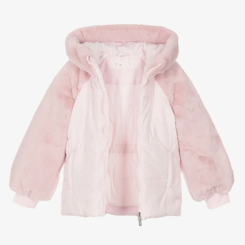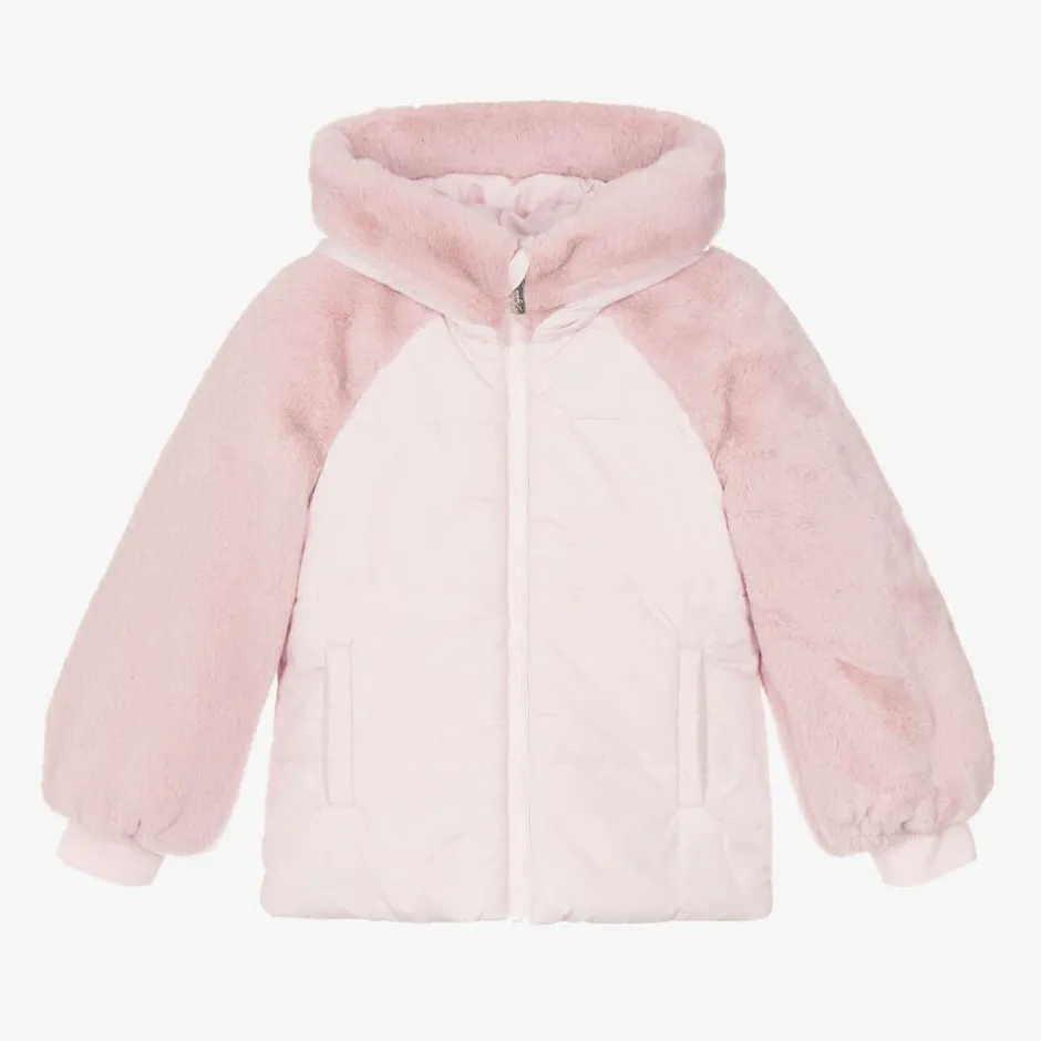 Lapin House Girls Pink Faux Fur Hooded Jacket Hot