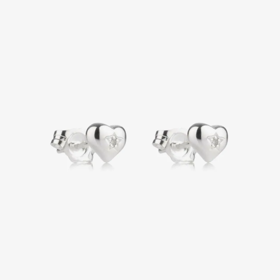 Sterling silver earrings for girls by British brand Little Star, set with small diamond stars. A style for every occasion, these dainty heart-shaped studs will add a lovely touch to any look. The butterfly backs ensure a secure fit. These sparkly earrings are ideal for gifting, presented beautifully in a drawstring pouch and box. A Little Star jewellery gift bag is also included, perfect for birthdays and special celebrations.