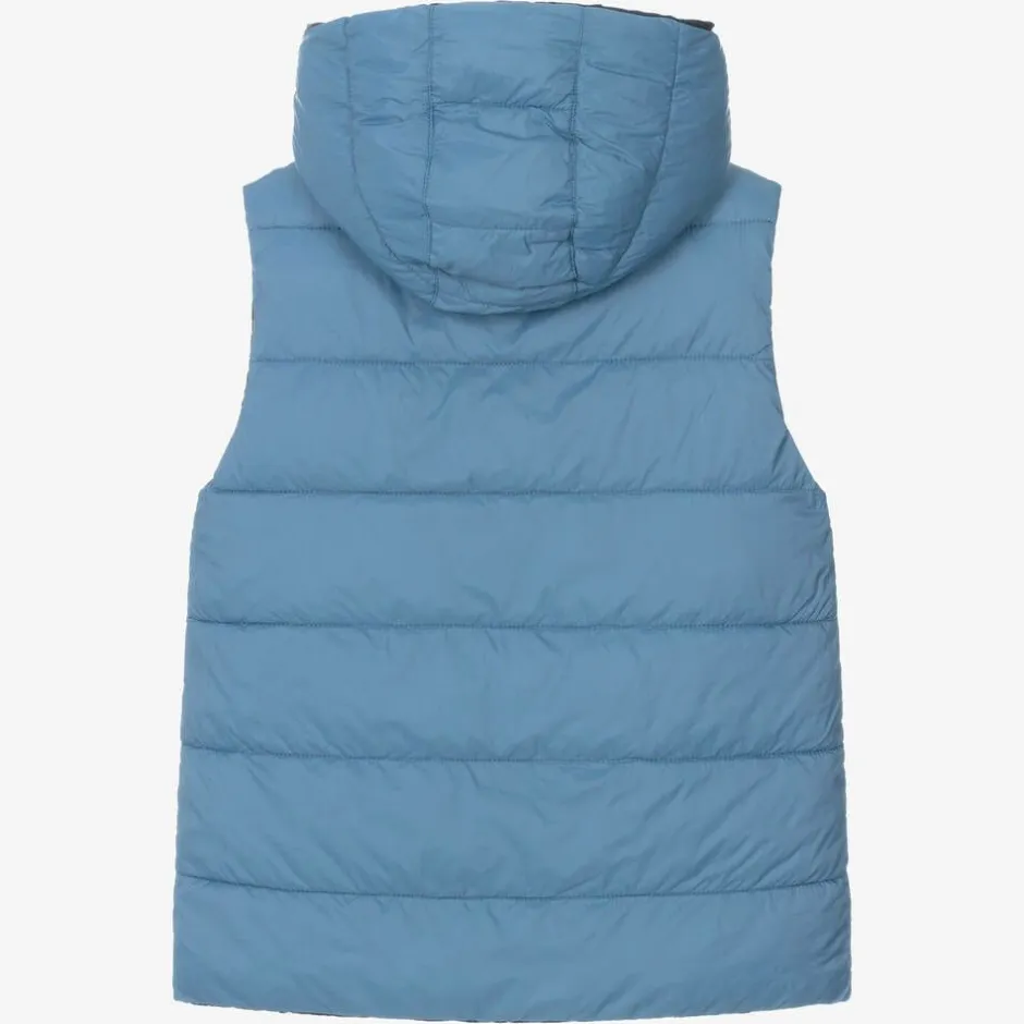 In a reversible style, this blue gilet for boys is from Mayoral. This lightweight gilet is a great layering option on cold days, with a protective hood and pockets on both sides.