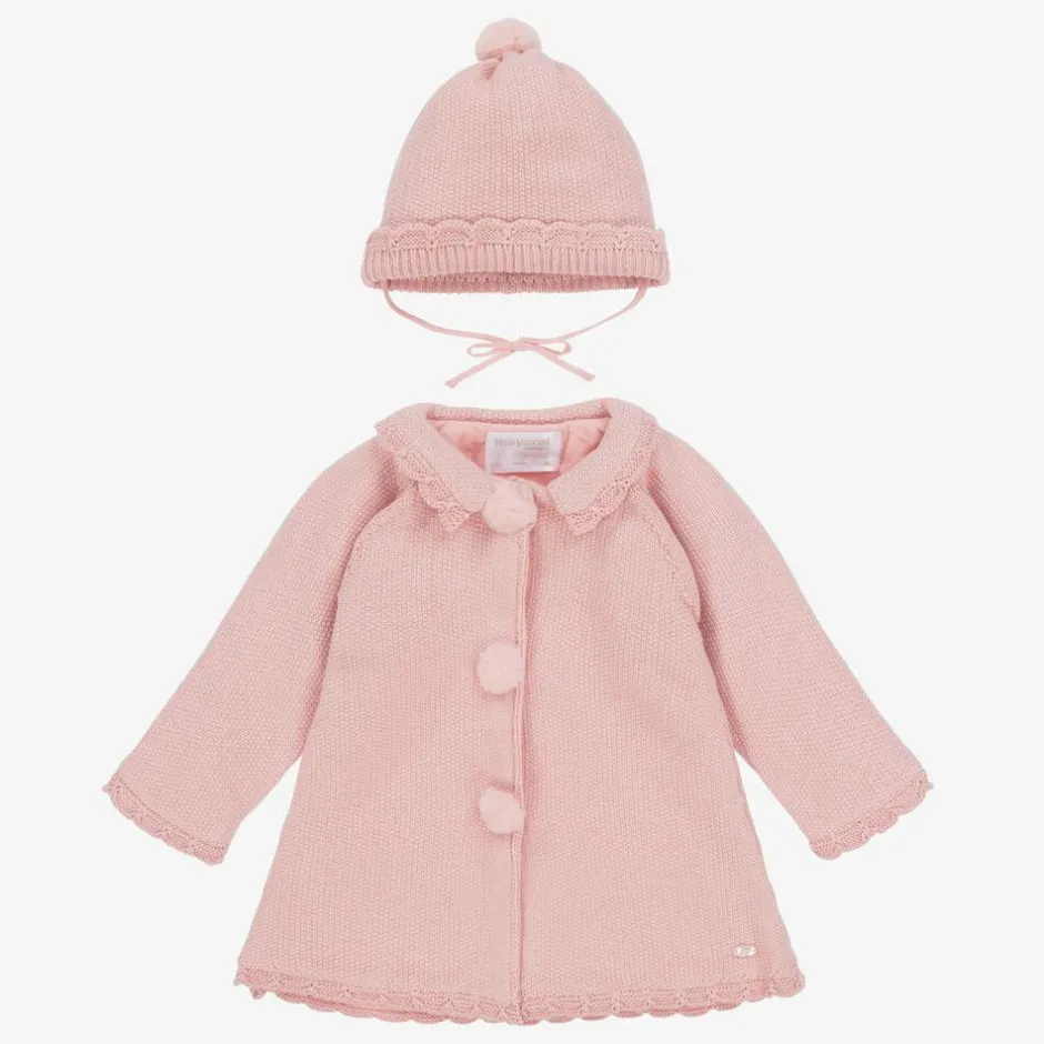 Mayoral Girls Pink Knitted Pram Coat & Hat Set