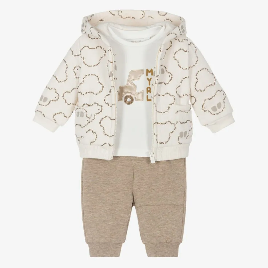 Mayoral Newborn Baby Boys Beige Cotton Tracksuit Set Clearance