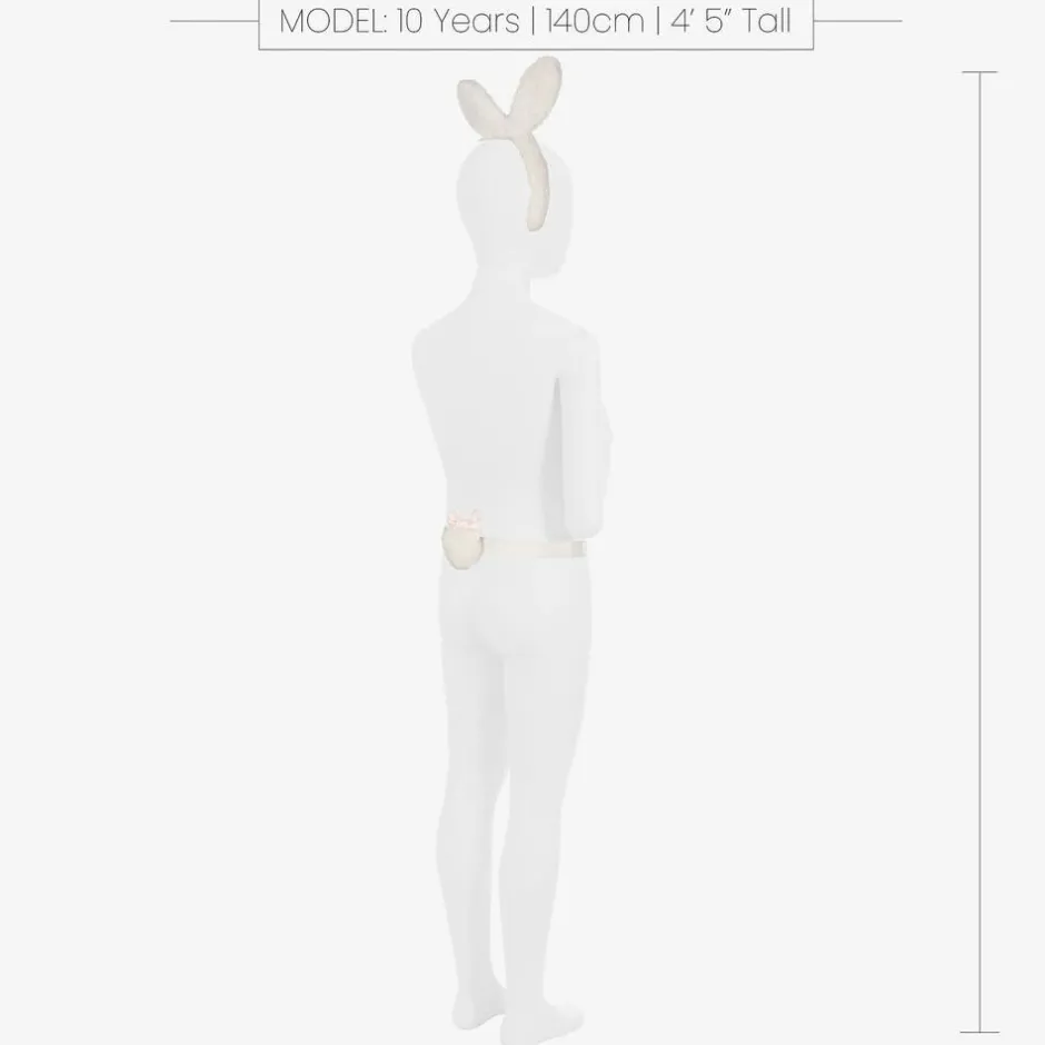 Adorable ivory dressing-up hairband set for girls by Meri Meri, made in beautifully soft plush. The hairband has 3D ears, organza flowers and pearlescent beads for a cute look. The pom-pom bunny tail has an elasticated, velcro strap for comfortable wear around the waist, transforming your little girl into a cute Spring bunny.