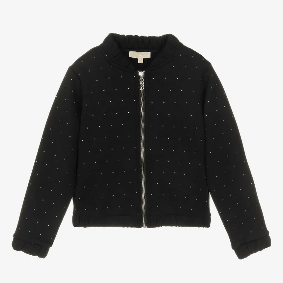 Michael Kors Kids Girls Black Jersey Diamanté Zip-Up Top New