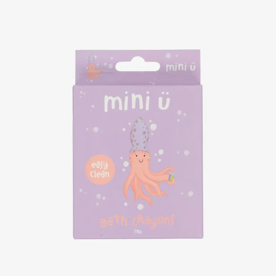 A pack of six bath crayons for little boys and girls by Mini U, with washable, plastic-free colours. Let little ones get creative during bathtime with these crayons that can be used for doodling on smooth surfaces, such as the bathtub or tiled walls. The set includes six colours: red, yellow, green, black, blue and orange.