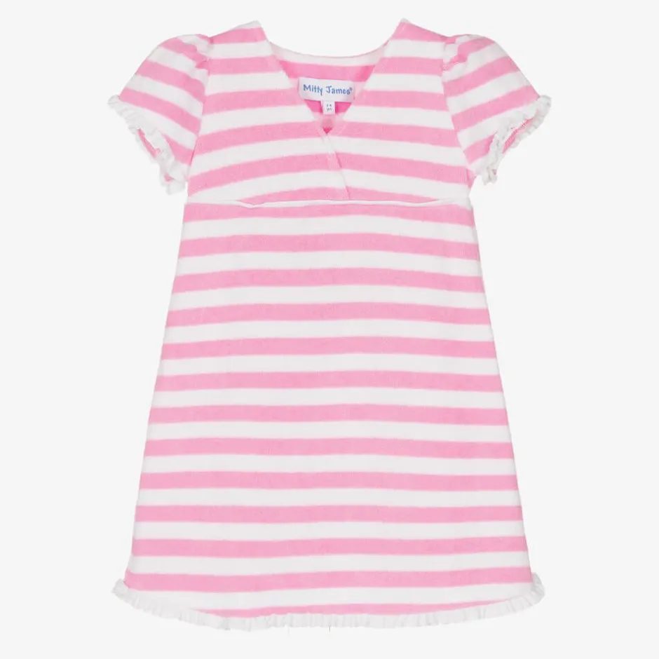 Mitty James Girls Pink Striped Towelling Dress Hot