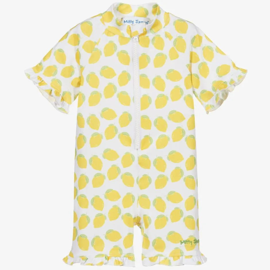 Mitty James Girls White Lemon Sun Suit (UPF 50+) Hot