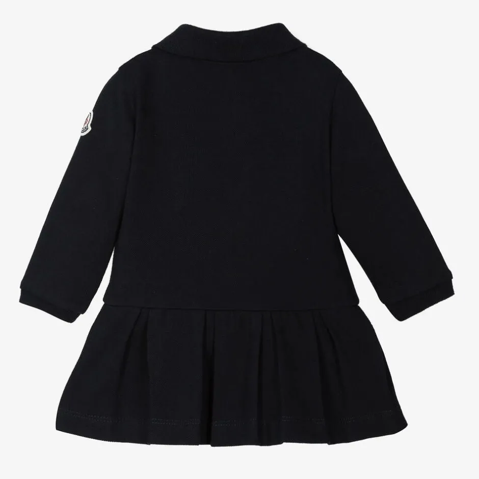 Moncler Enfant Baby Girls Navy Blue Cotton Piqué Dress Discount