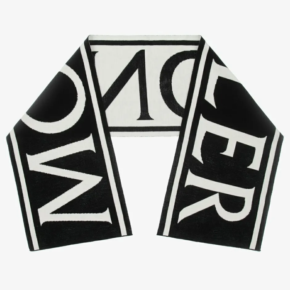 Moncler Enfant Black & Ivory Logo Wool Scarf Hot