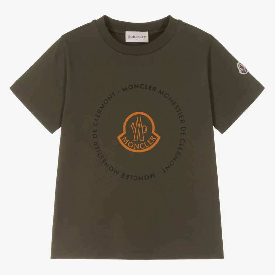 Moncler Enfant Boys Khaki Green Cotton T-Shirt Clearance