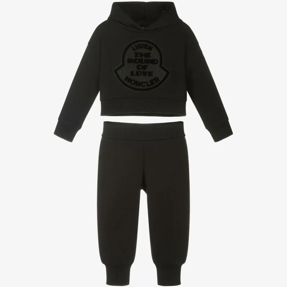 Moncler Enfant Girls Black Cotton Tracksuit New