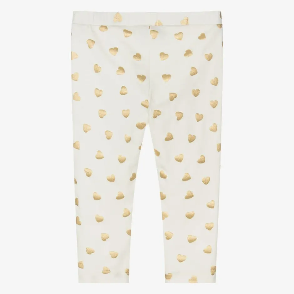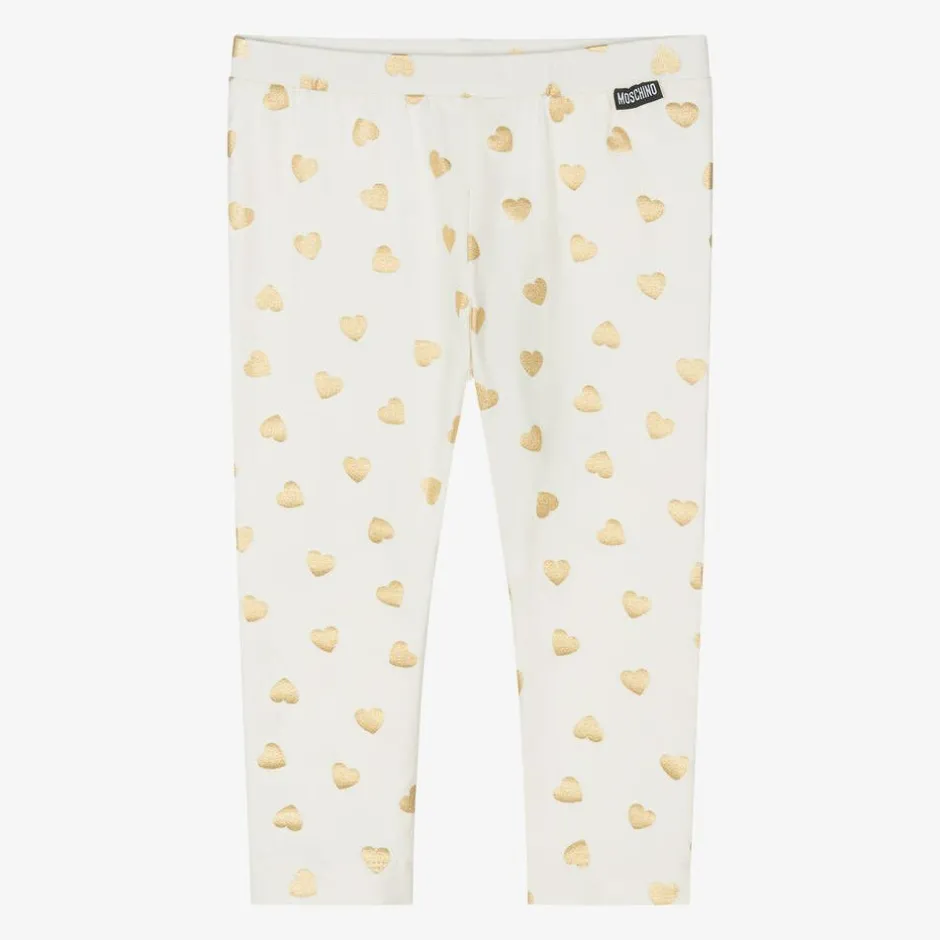 Moschino Baby Girls Ivory & Gold Heart Cotton Leggings Outlet