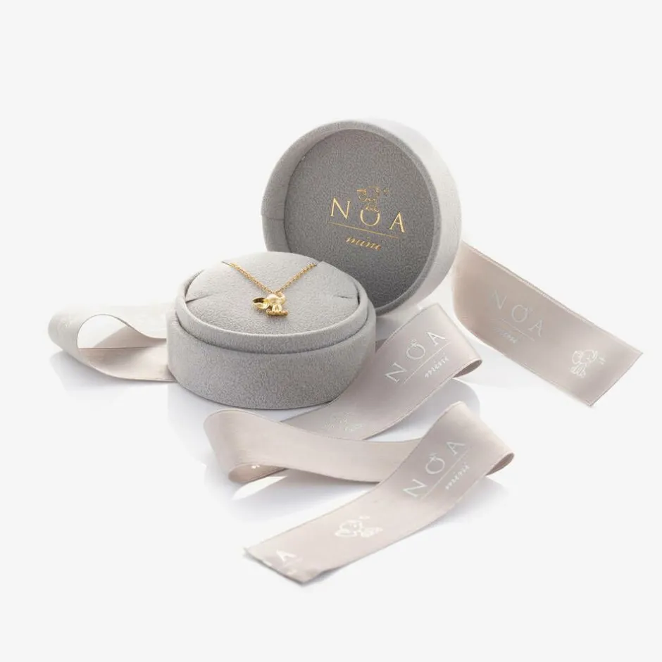 Delicate yellow gold necklace for little boys and girls by NOA Mini, beautifully hand crafted in Italy. Designed as their first fine jewellery piece, this timeless keepsake is designed to be passed through generations. Set on a fine 18 karat yellow gold chain, the charming elephant pendant is detailed with exquisite white diamonds. Ideal as a gift for a special new arrival, it comes presented in a bow-tied velvet gift box with a lovely Steiff elephant toy. The cuddly Steiff elephant toy can be your baby's first friend, reminding them of their special bracelet for years to come.