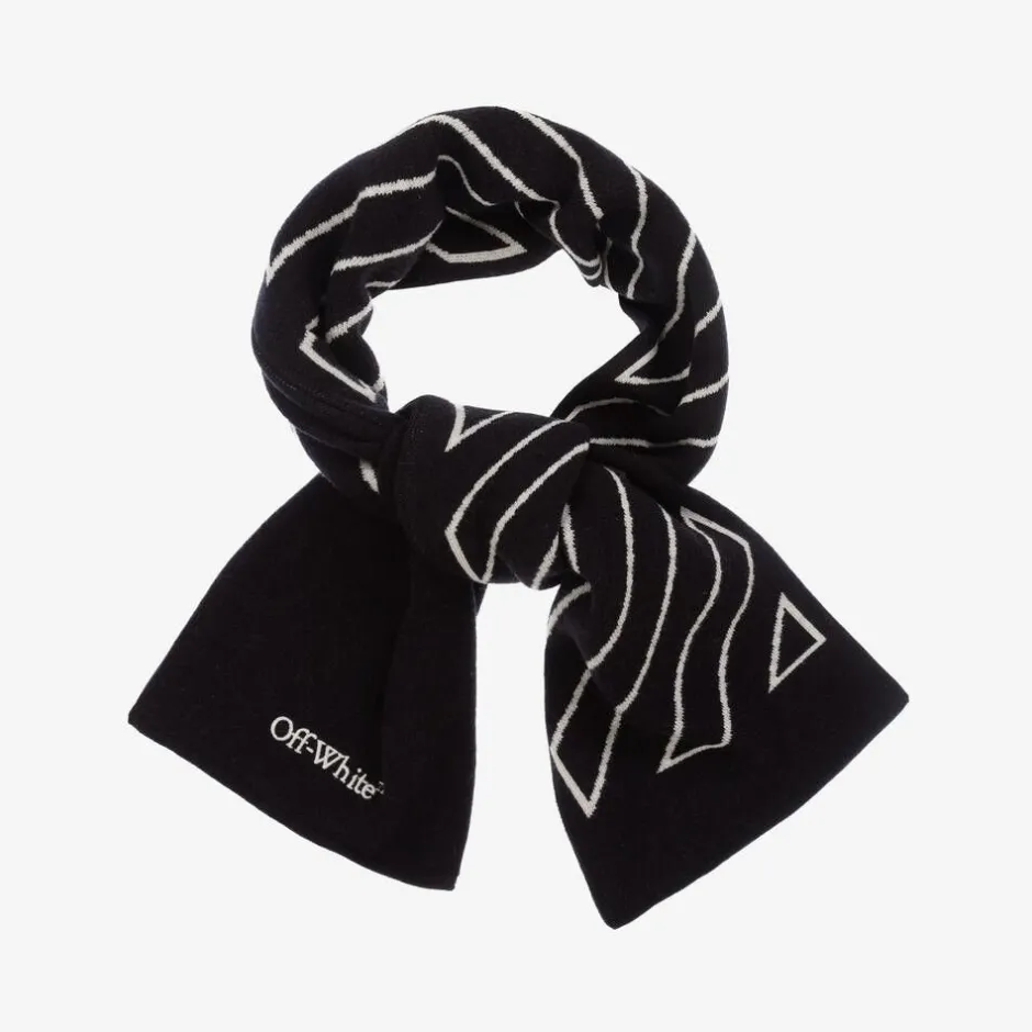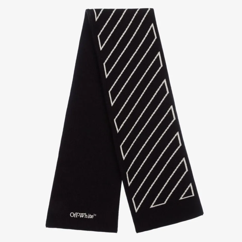 Instantly recognisable, this black scarf for boys by Off-White is patterned with the streetwear brand's signature diagonal stripe in white. Super soft and cosy, it is knitted in a luxurious, double layer wool and cotton blend, ideal for an effortlessly stylish look on cooler days.