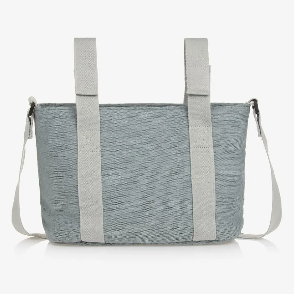 A grey changing bag by Pasito a Pasito Walking Mum, made from a smooth weave. Lined in lightweight cotton, the spacious main compartment as a plenty of pockets, including a zip-up wet pocket and a thermal bottle holder for added practicality. Fastening with a zip, it has two velcro-fastened buggy straps at the top and a long detachable shoulder strap. Stitched with an ivory logo patch on the front for a branded finish, it comes with a lovely coordinating changing mat.