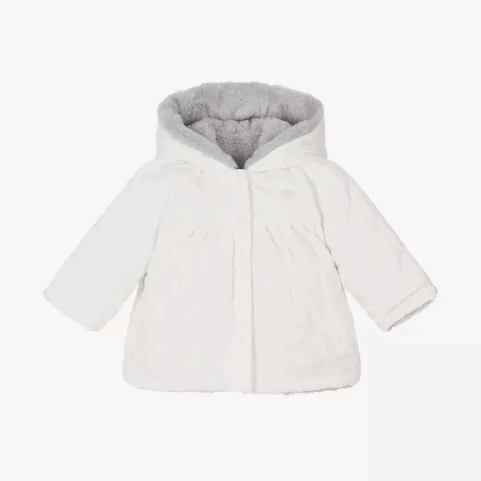 Patachou Baby Girls Ivory & Grey Reversible Coat Outlet