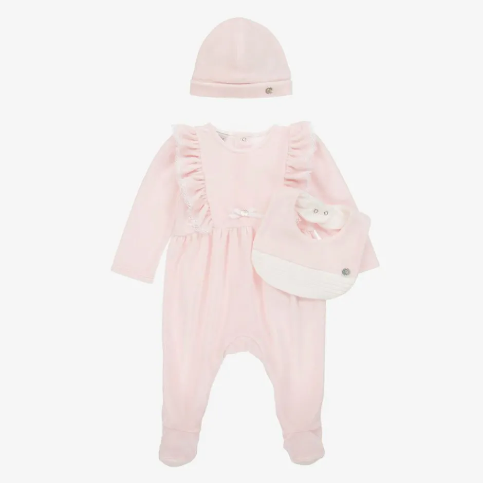 Paz Rodríguez Girls Pink Velour Babysuit Set Outlet