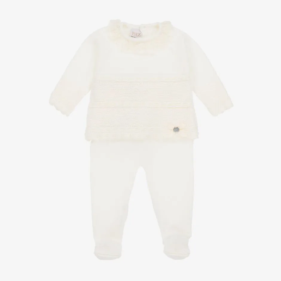 Paz Rodríguez Ivory Merino Wool Knitted 2 Piece Babygrow New