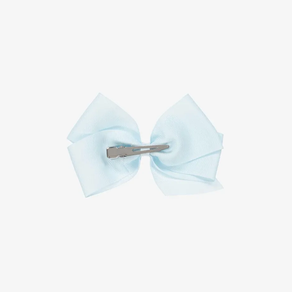 Girls lovely pale blue bow hair clip by Peach Ribbons, handmade from grosgrain ribbon and set on a metal clip.