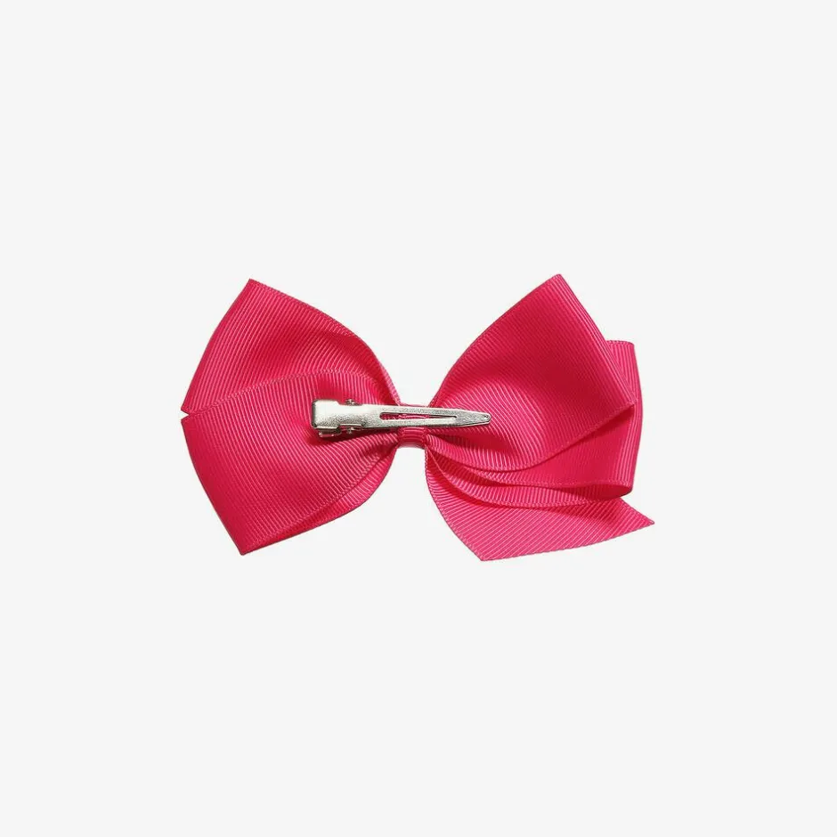 Girls lovely fuchsia pink bow hair clip by Peach Ribbons, handmade from grosgrain ribbon and set on a metal clip.