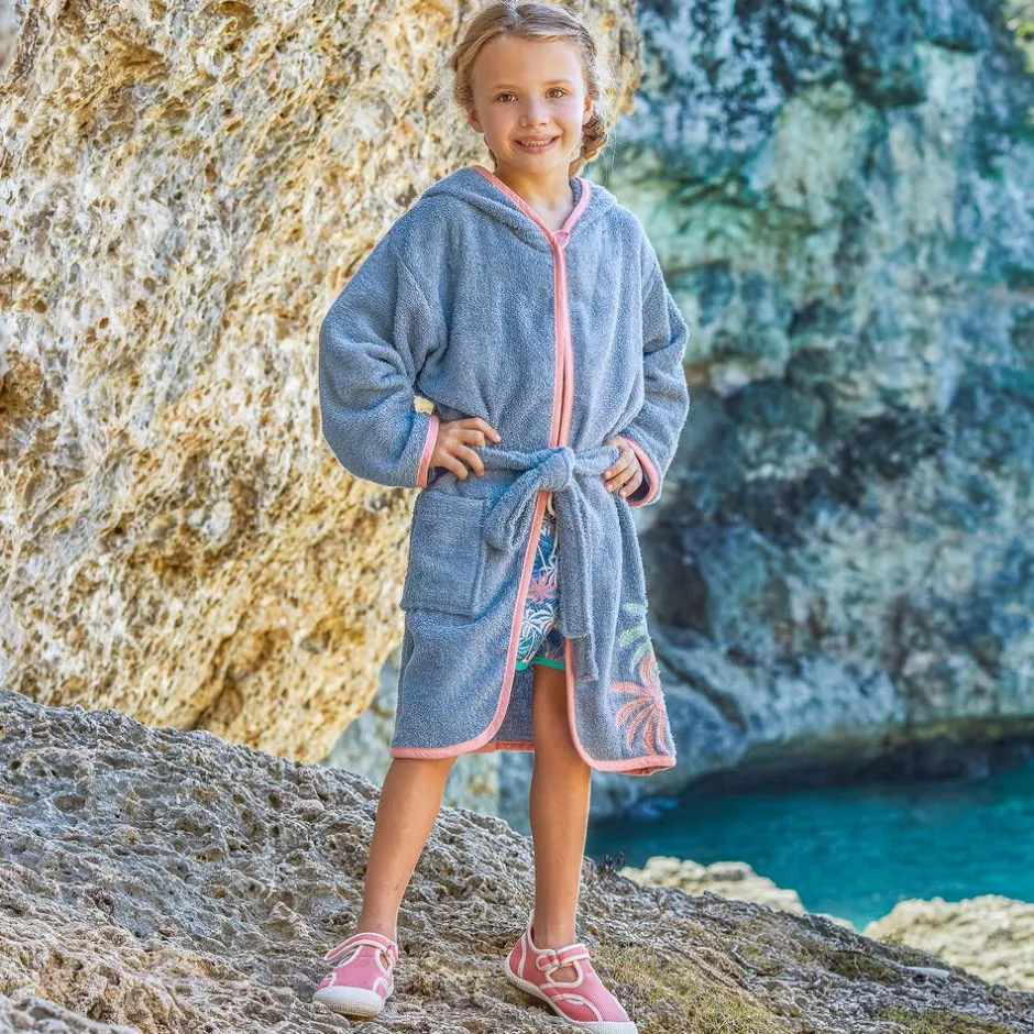 Coral pink aqua shoes for girls by Playshoes, made in breathable, AZO dye-free mesh and lined with soft textile. Trimmed with ivory, they have padded panels and pull-tabs on the heel for comfort and easy pull-on. The easy-to-fasten velcro straps have nickel-free hardware. The treaded, rubberised soles also cover the toes to protect their little feet in the pool or sea.