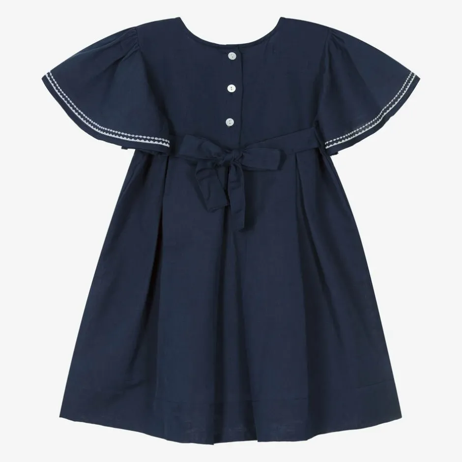 Powell Craft Girls Navy Blue Linen & Cotton Dress Clearance