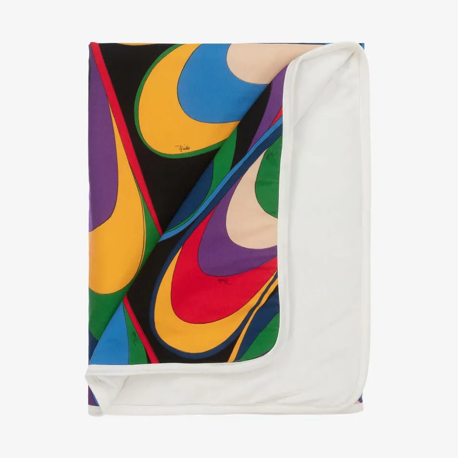 Patterned in the designer's signature Onde print, this black and purple cotton blanket for baby girls is made by luxury brand, PUCCI. Lightly padded for comfort, it provides a soft surface for baby to lay on and is ideal as a striking nursery accessory. The iconic print features bold, colourful swirls, synonymous with the brand.