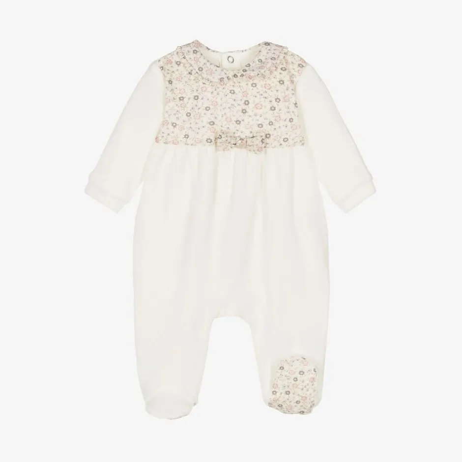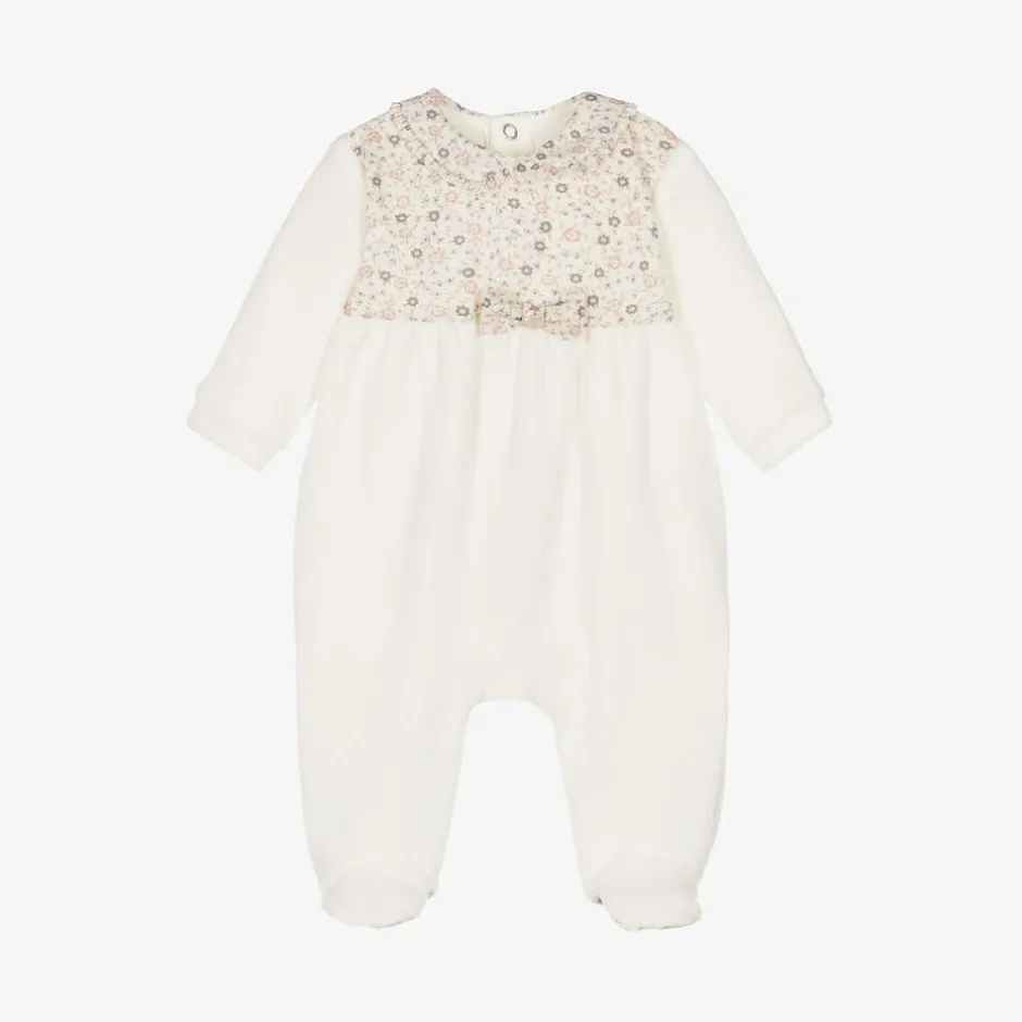 Pureté Du… Bébé Girls Ivory Velour Floral Print Babygrow Hot