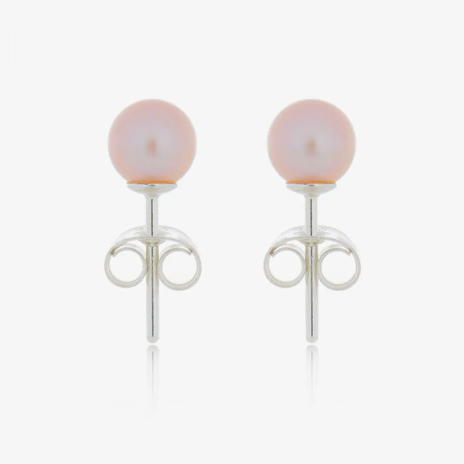 Raw Pearls Girls Pink Pearl Earrings (5mm) Clearance